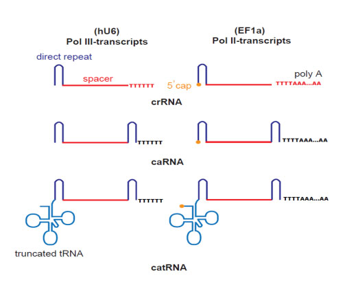 新途生物与合作团队开发了一种人工设计的具有Rnase抗性的闭锁截短的pre-tRNA样crRNA (caged truncated pre-tRNA-like crRNA,catRNA) ,它可以利用Lachnospiraceae细菌种属的Cpf1(LbCpf1)进行精确高效的基因编辑。与常规crRNA相比,catRNA的特异性基因敲除和敲入分别增加了3.2倍和4.3倍。